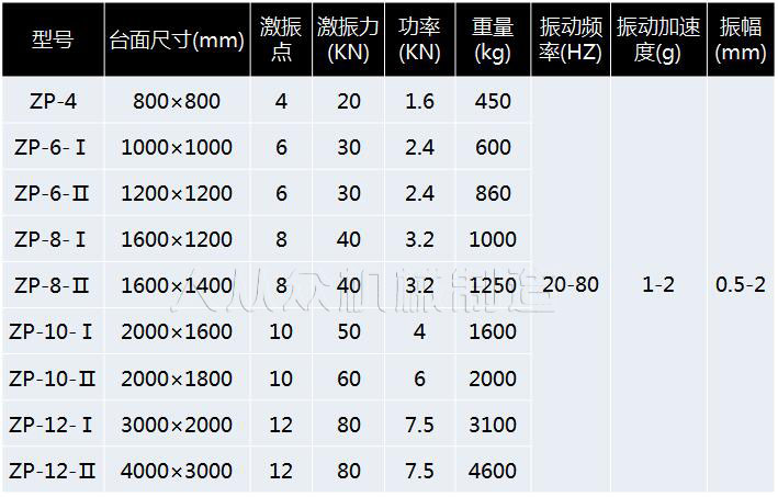 ZP振動平臺技術(shù)參數(shù):
